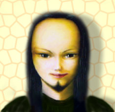 cybernetic opaque "big black slanted eyes" that seem in many cases to
